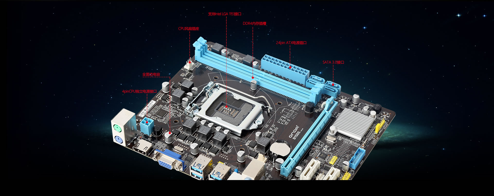 | 包装清单 | 作为新一代Intel Skylake LGA1151处理器的最佳座驾,昂达B150S全固版采用B150芯片组,板载2根DDR4内存,支持最大32G内存。4个SATA3.0硬盘接口,使数据高速传输成为可能。多相供电、全固态设计做工,可支持4核高频处理器,千兆网卡等更是一应俱全。VGA/HDMI 全高清显示接口,完整支持高清输出,是办公、游戏家用的好选择。 |